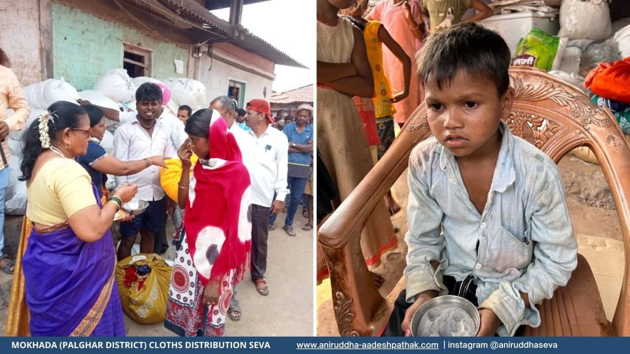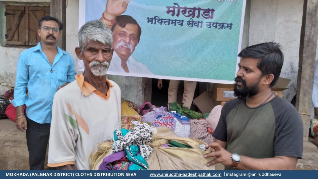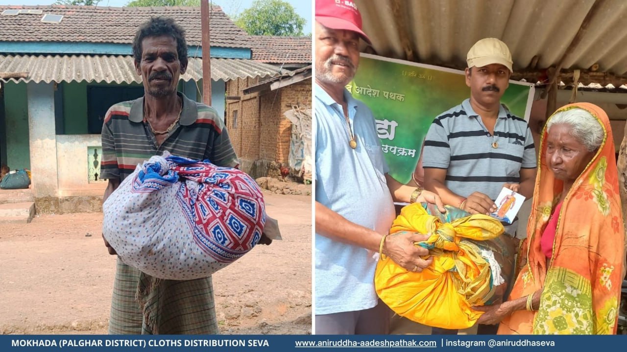 On Sunday 22nd October 2023, under June Te Sone Yojana (Old is Gold programme), clothes and tonic bottles were distributed to about 900 families of 12 villages in Ase Division, Mokhada in Palghar district of Maharashtra. Nearly 61 volunteers from 8 centers participated in this devotional service.